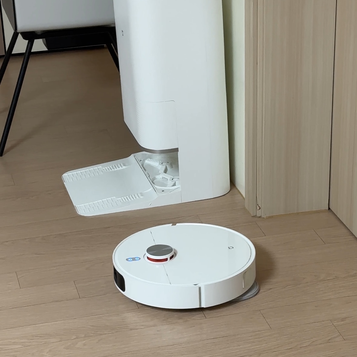- 자동 세척 및 열풍 건조 스테이션: 물걸레 청소 후에는 스테이션으로 돌아가 70도의 뜨거운 물 로 걸레를 자동으로 세척하고, 열풍 건조 까지 해줍니다. 걸레 냄새나 세균 번식 걱정을 덜 수 있어서 정말 만족스러운 부분이에요.