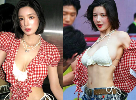 매년 화제가 되는 권은비의 워터밤 의상! 올해는 정말 역대급이라는 말이 부족할 정도였어요. 바로 와일드하면서도 섹시한 '카우걸' 컨셉이었는데요. 강렬한 레드 체크무늬 셔츠와 핫팬츠, 그리고 웨스턴 부츠의 조합은 정말 완벽했습니다. 특히, 셔츠 안에는 과감한 흰색 비키니를 매치해서 시원함과 섹시미를 동시에 잡았어요.