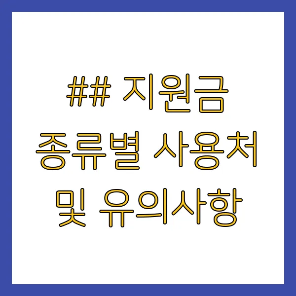 당첨된 지원금은 선택한 종류에 따라 사용처와 유의사항이 다릅니다. 현명한 소비를 위해 내용을 숙지하는 것이 중요합니다.