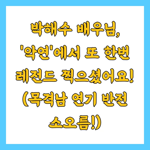 안녕하세요 여러분! 오늘은 정말이지, 이야기 안 하고는 못 배길 넷플릭스 시리즈 '악연'과 그 중심에서 엄청난 연기를 보여주신 박해수 배우님 이야기를 가져왔어요. 😊 '오징어 게임', '수리남' 등으로 이미 월드클래스 배우임을 입증하셨지만, 이번 '악연'에서는 정말이지 "박해수가 박해수 했다!" 소리가 절로 나왔답니다. 특히 그가 연기한 '목격남' 캐릭터의 반전은… 와, 정말 뒤통수를 제대로 맞은 기분이었어요!
