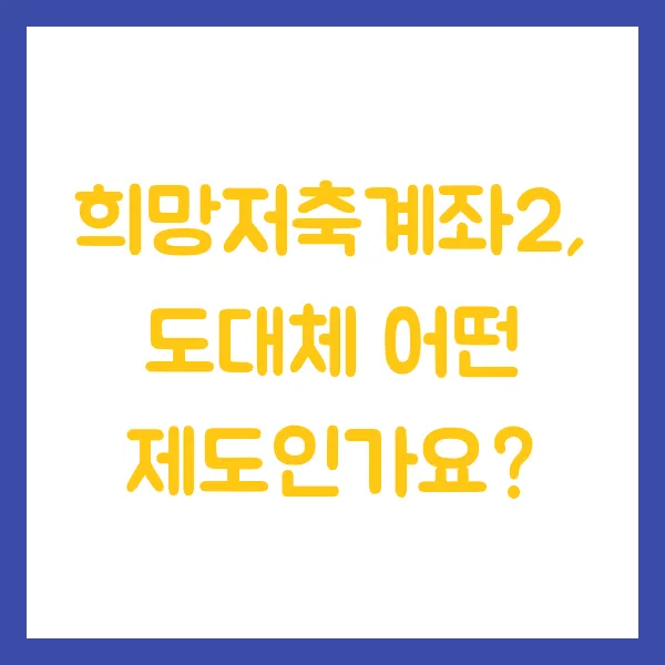 희망저축계좌2, 도대체 어떤 제도인가요?