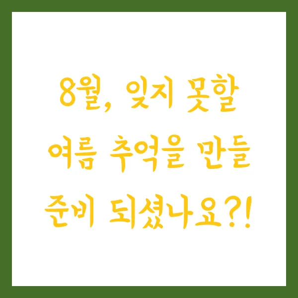 8월, 잊지 못할 여름 추억을 만들 준비 되셨나요?!