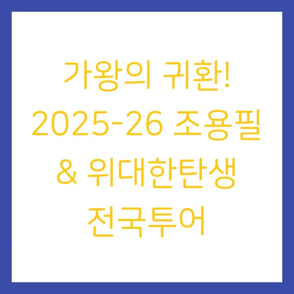 안녕하세요, 여러분! 오늘은 정말 심장이 마구 뛰는, 엄청난 소식을 가지고 왔어요. ^^ 바로 우리들의 영원한 '가왕', 조용필 님의 2025-26 전국투어 콘서트 소식입니다! 정말 오랫동안 기다리셨죠? 그의 음악은 단순한 노래가 아니라 우리 삶의 배경음악과도 같았잖아요. 그 감동의 무대가 드디어 우리 곁으로 다시 찾아온다고 하니, 벌써부터 마음이 설레네요!