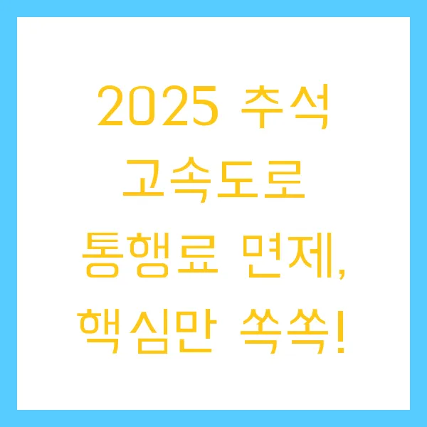 2025 추석 고속도로 통행료 면제, 핵심만 쏙쏙!