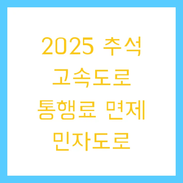 2025 추석 고속도로 통행료 면제 민자도로